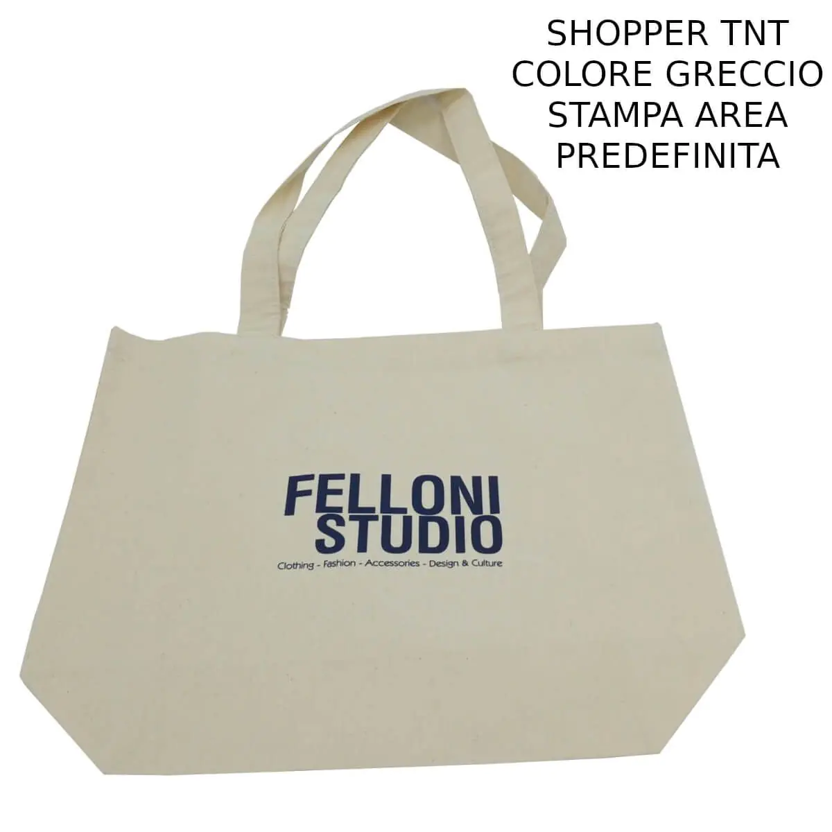Borse linea cucito in Cotone 135 gr o TNT (Tessuto Non Tessuto) da 70 gr. La lunghezza dei manici è di 50 cm esclusa la 50x45x12 che arriva a 100 cm. I manici sono dello stesso colore e materiale della shopper. La cucitura è artigianale.
