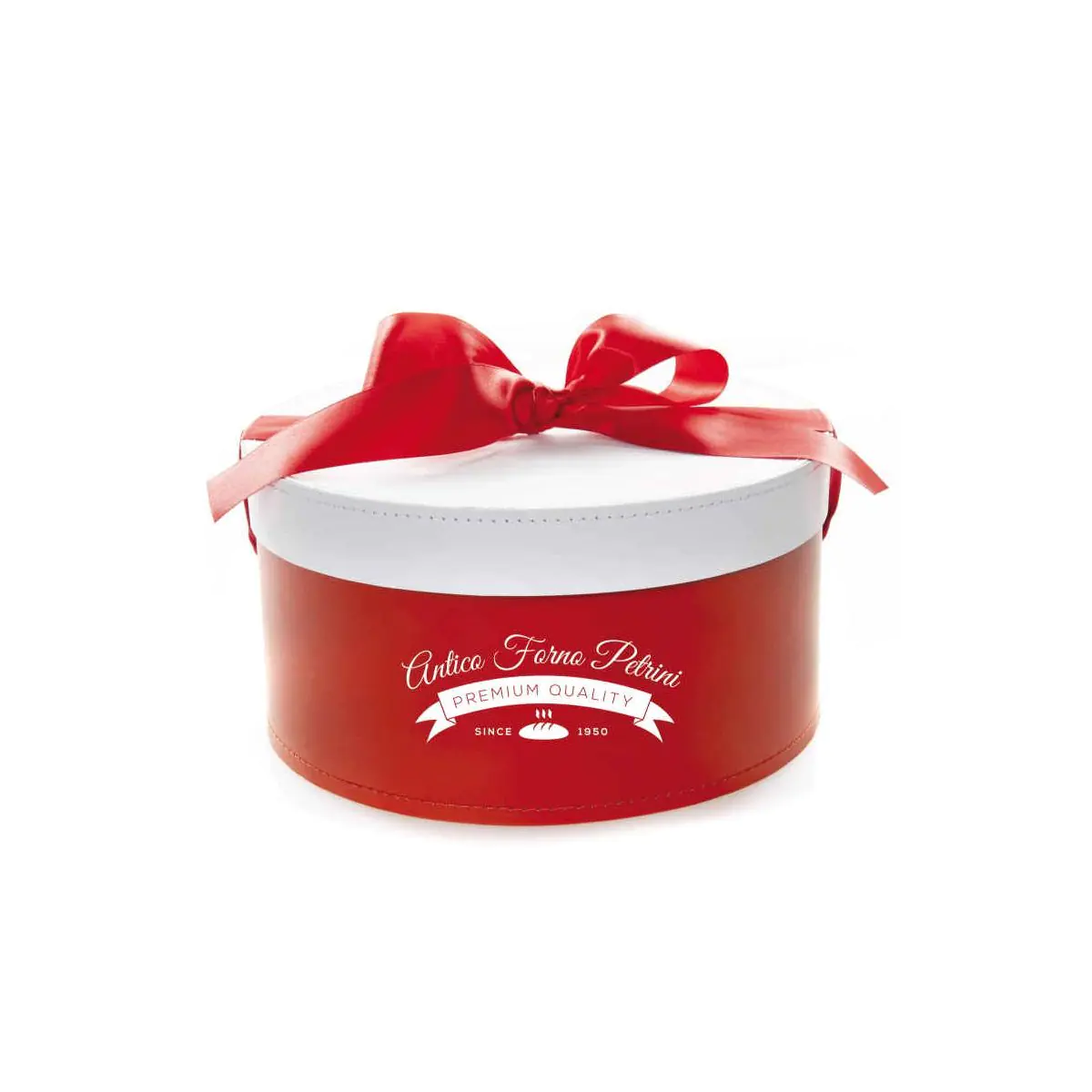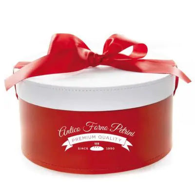 Per chi desidera un packaging di alta qualità. Ideale per confezionare cappelli, regali, dolci e panettoni. La combinazione di colori rosso e bianco si presta molto bene per confezioni Natalizie o per Panettoni.