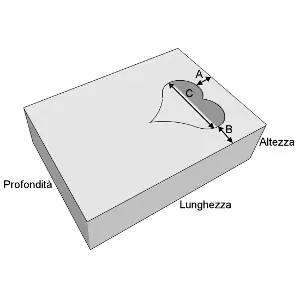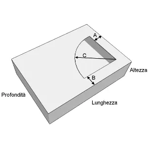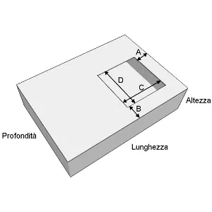Inserisci le dimensioni in cm. Il nome di ogni campo fa riferimento alle dimensioni rappresentate nell'immagine. |
