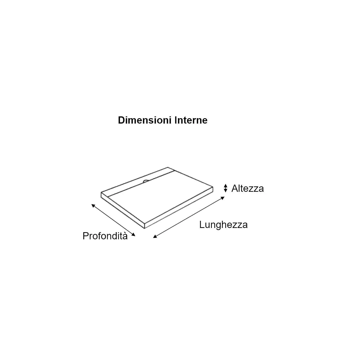 Dimensioni Le dimensioni sono in cm e si riferiscono a quelle interne. Convenzione: le prime due sono quelle di base(lunghezza x profondià), la terza è l'altezza. La scelta è tra le dimensioni a catalogo