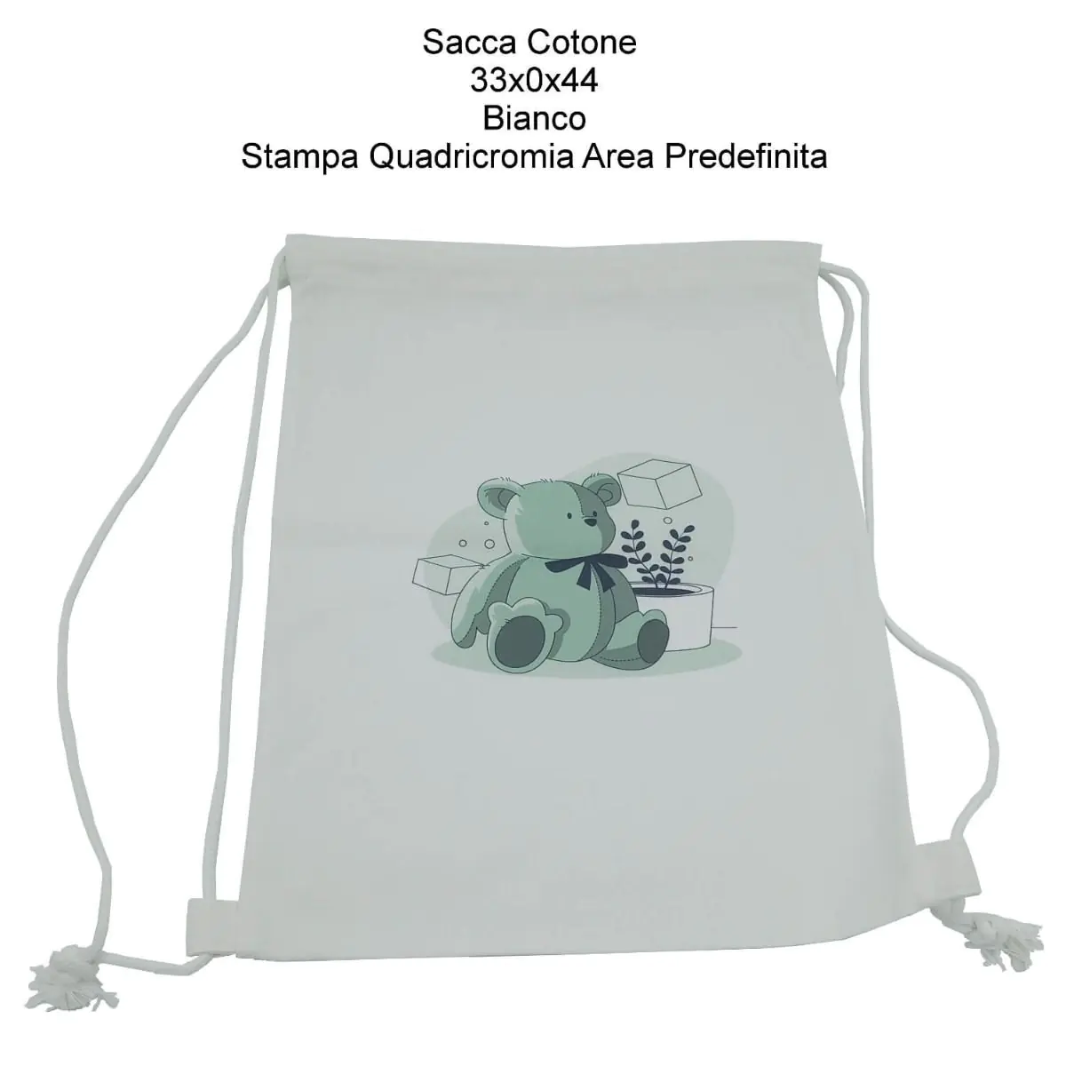 Sacca Zainetto linea cucito in Cotone 185 gr o TNT (Tessuto Non Tessuto) da 70 gr.