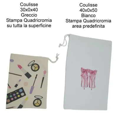 MINIMO D'ORDINE DI 25 PEZZI: Coulisse/Sacca/Zainetto completa di personalizzazione