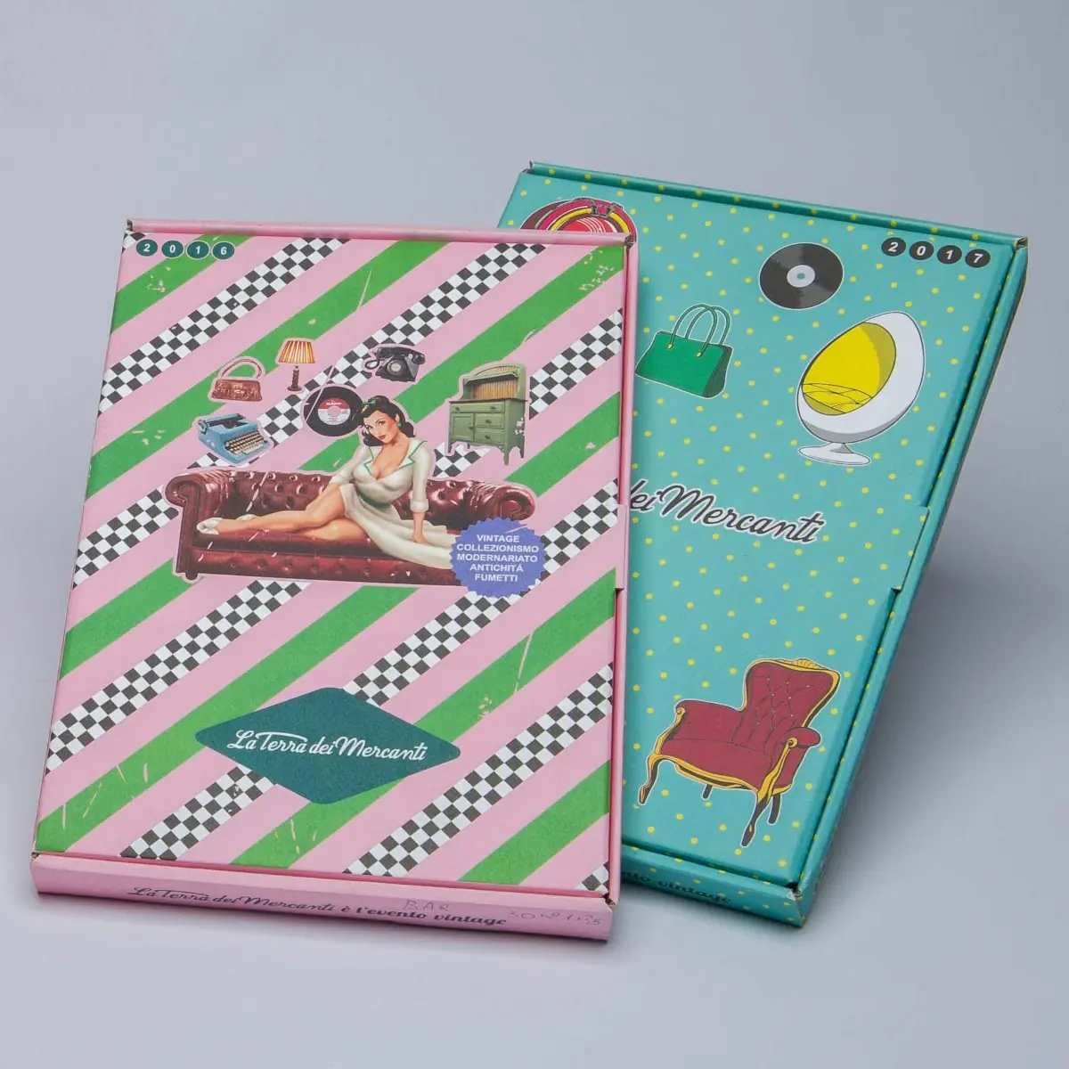 - Stampa in quadricromia: stampa a colori sull'intera superficie della scatola