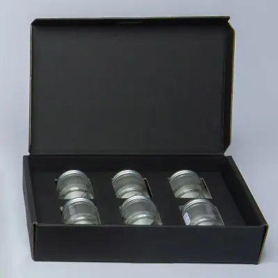 I divisori realizzati da ScatoleSuMisura sono soluzioni molto flessibili per risolvere tante esigenze di packaging. Oltre alla possibilità di suddividere lo spazio, fino ad 8 parti a scelta, permette anche diverse tipologie di sagomature: rettangolare, a cerchio, a forma di bottiglia. Ma la cosa più importante è che puoi decidere le dimensioni degli alloggi, adattandoli perfettamente ai tuoi prodotti.