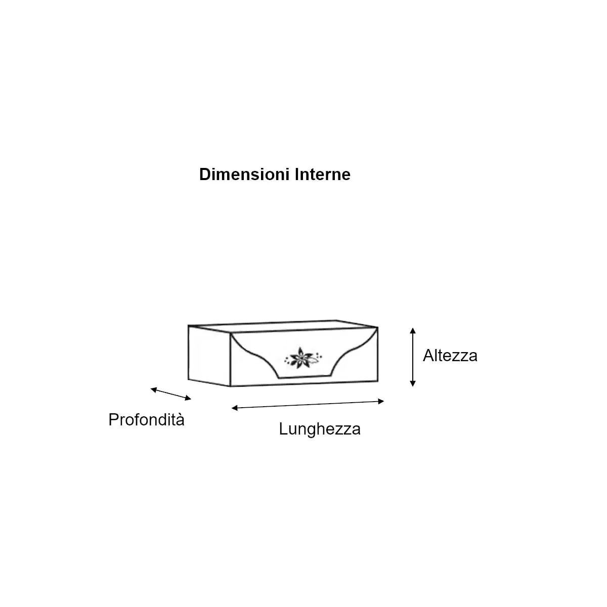 | Dimensioni | Le dimensioni sono in cm e si riferiscono a quelle interne. Convenzione: le prime due sono quelle di base(lunghezza x profondià), la terza è l'altezza. N.B.: per le dimensioni disponibili non si paga la fustella |