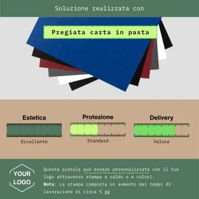 | Prototipazione | Si puo' ordinare una singola scatola a questo link Scatola Campione o premendo il pulsante "Aggiungi un Campione". NB: il colore scelto e' preferenziale e non puo' essere garantito |