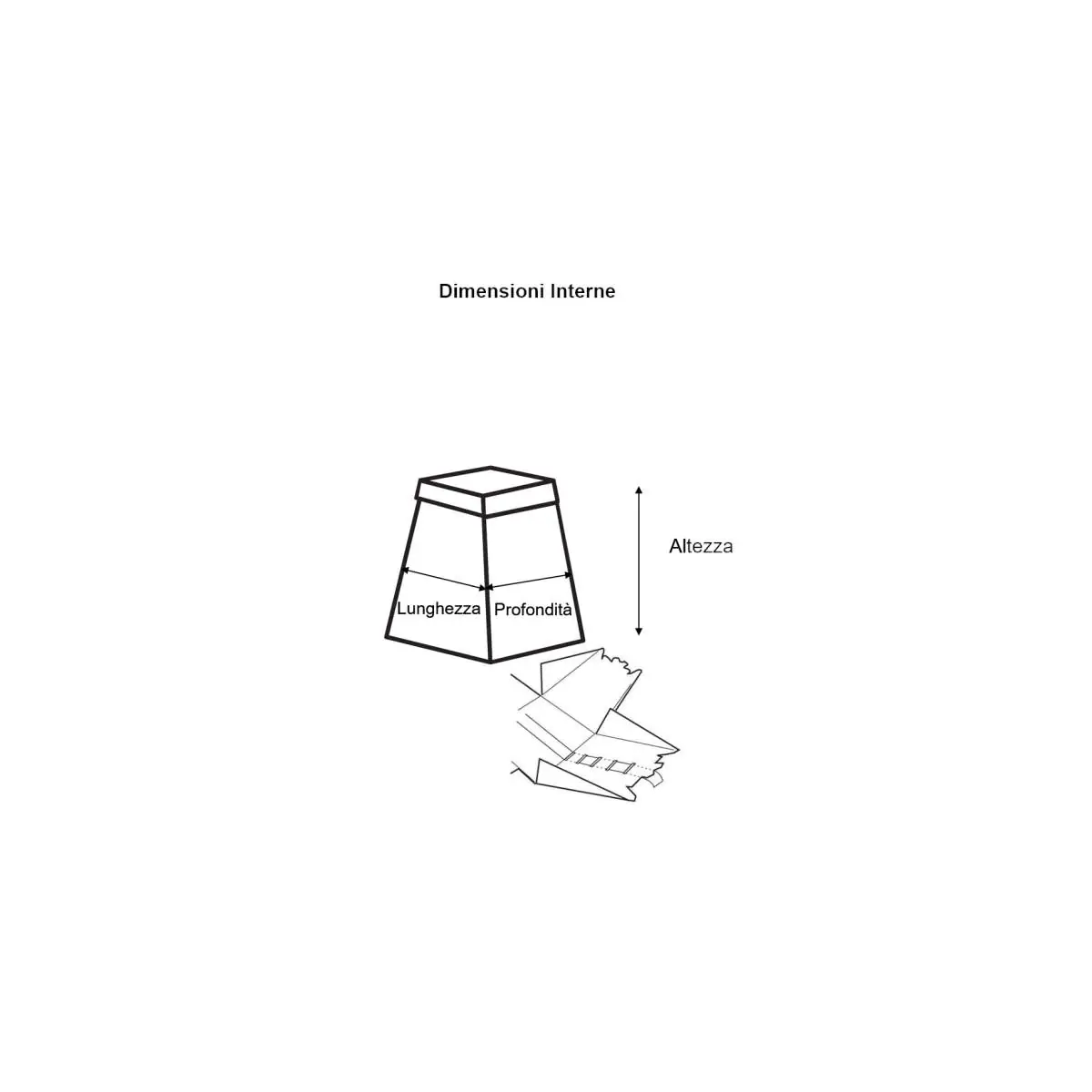 | Dimensioni | Le dimensioni sono in cm e si riferiscono a quelle interne. Convenzione: le prime due sono quelle di base(lunghezza x profondià), la terza è l'altezza. N.B.: per le dimensioni disponibili non si paga la fustella |