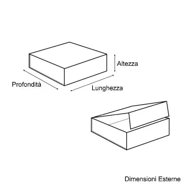 | Dimensioni | Le dimensioni sono in cm e si riferiscono a quelle esterne. Convenzione: le prime due sono quelle di base(lunghezza x profondià), la terza è l'altezza. N.B.: per le dimensioni disponibili non si paga la fustella |