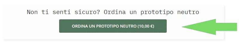 | Prototipazione | Si puo' ordinare una singola scatola dal link Prototipo o dal pulsante "Aggiungi un prototipo neutro" (menu quantità scheda prodotto). NB: il colore e' preferenziale(non garantito) |