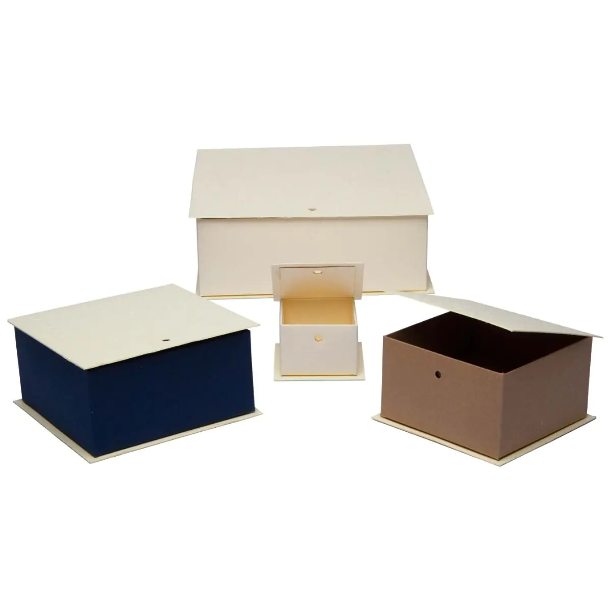 Abbiamo tante colorazioni disponibili che ti aiuteranno a trovare il packaging più idoneo per le tue esigenze. I colori chiari come avorio, bianco neve o ghiaccio sono più economici rispetto a quelli scuri come blu, rosso, bordeaux, verde, carruba (marrone scuro), nero. Il sabbia (avana) è il materiale più economico.