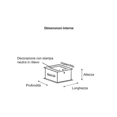 | Dimensioni | Le dimensioni sono in cm e si riferiscono a quelle interne. Convenzione: le prime due sono quelle di base(lunghezza x profondià), la terza è l'altezza. N.B.: per le dimensioni disponibili non si paga la fustella |