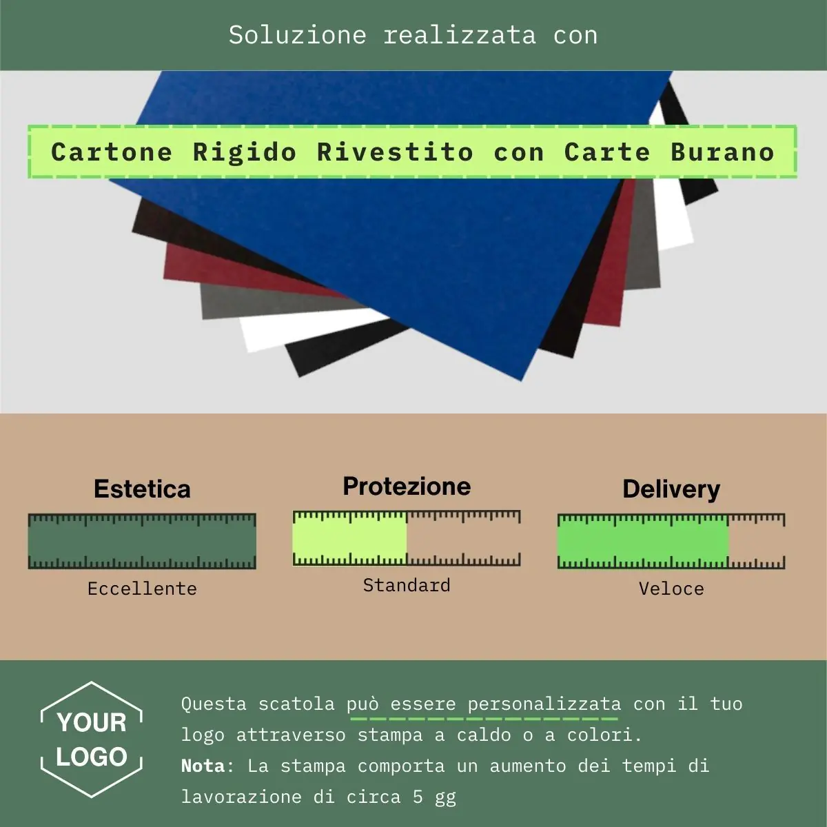 Packaging lusso, alta qualità dei materiali e della struttura. Personalizzabile.