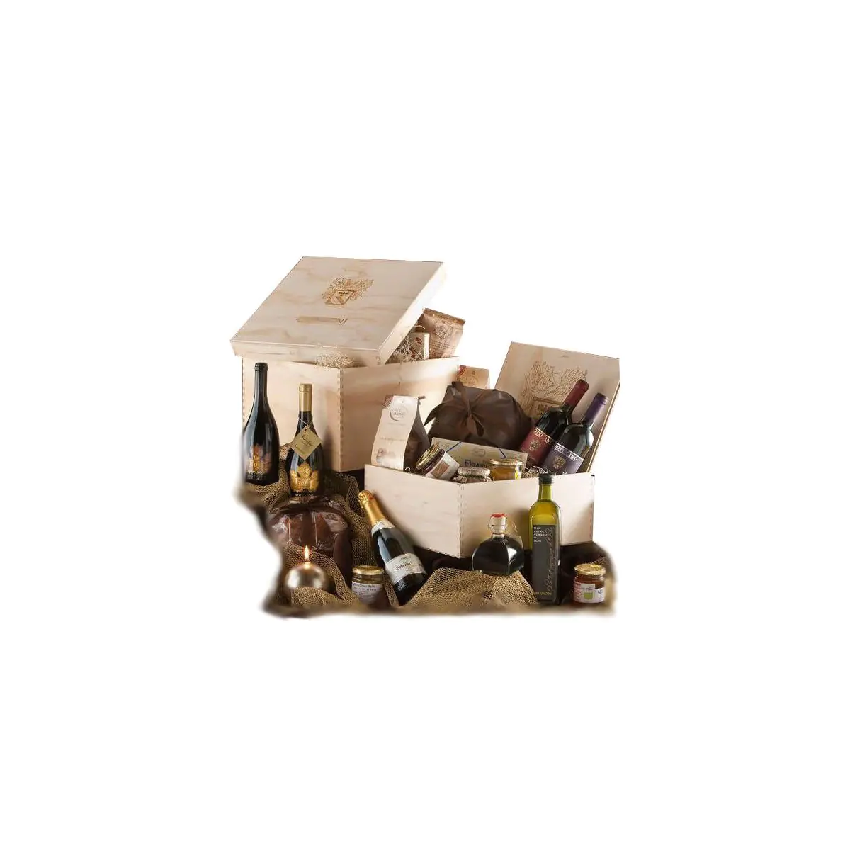 Scatole in legno utilizzabili per confezionare regali, oggetti, dolci o strenne natalizie.