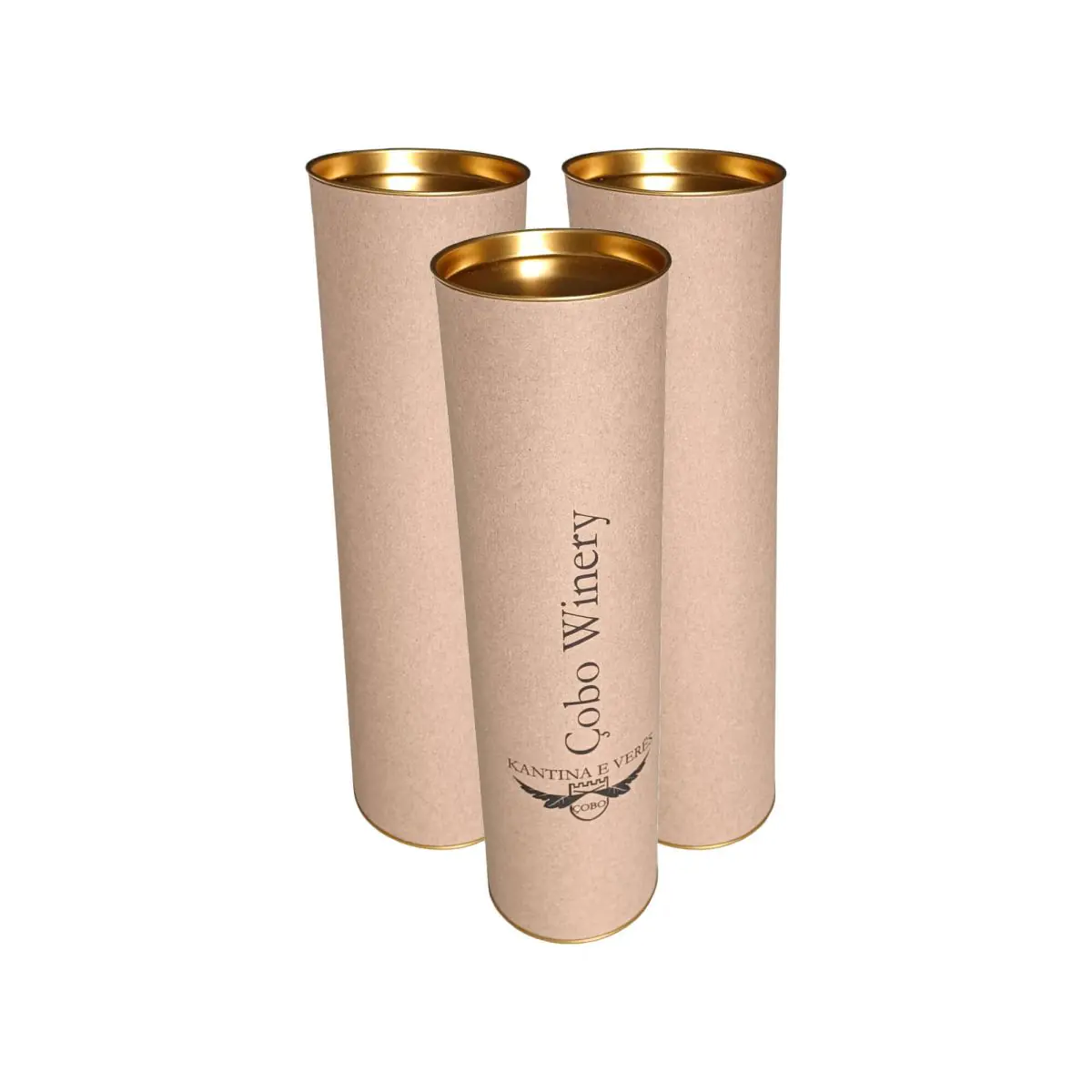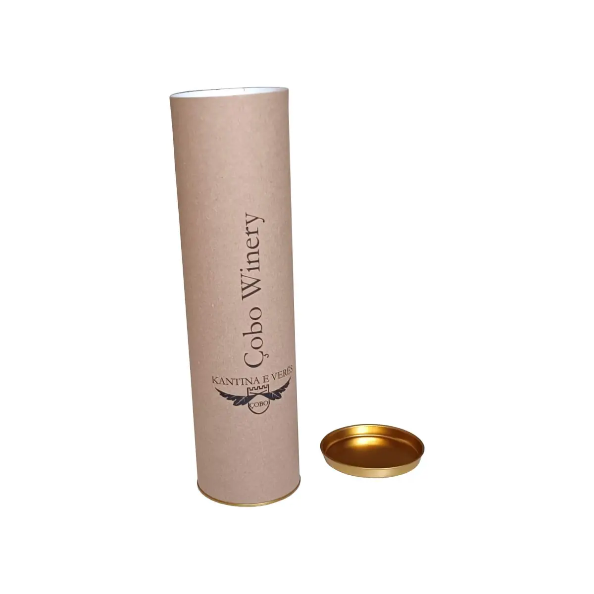 Scatola da confezione a tubo con tappi in metallo. Ideale per confezionare bottiglie.