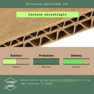 | Materiale | Scatole in Cartone Microtriplo (2 onde), circa 0,4 cm di spessore. |