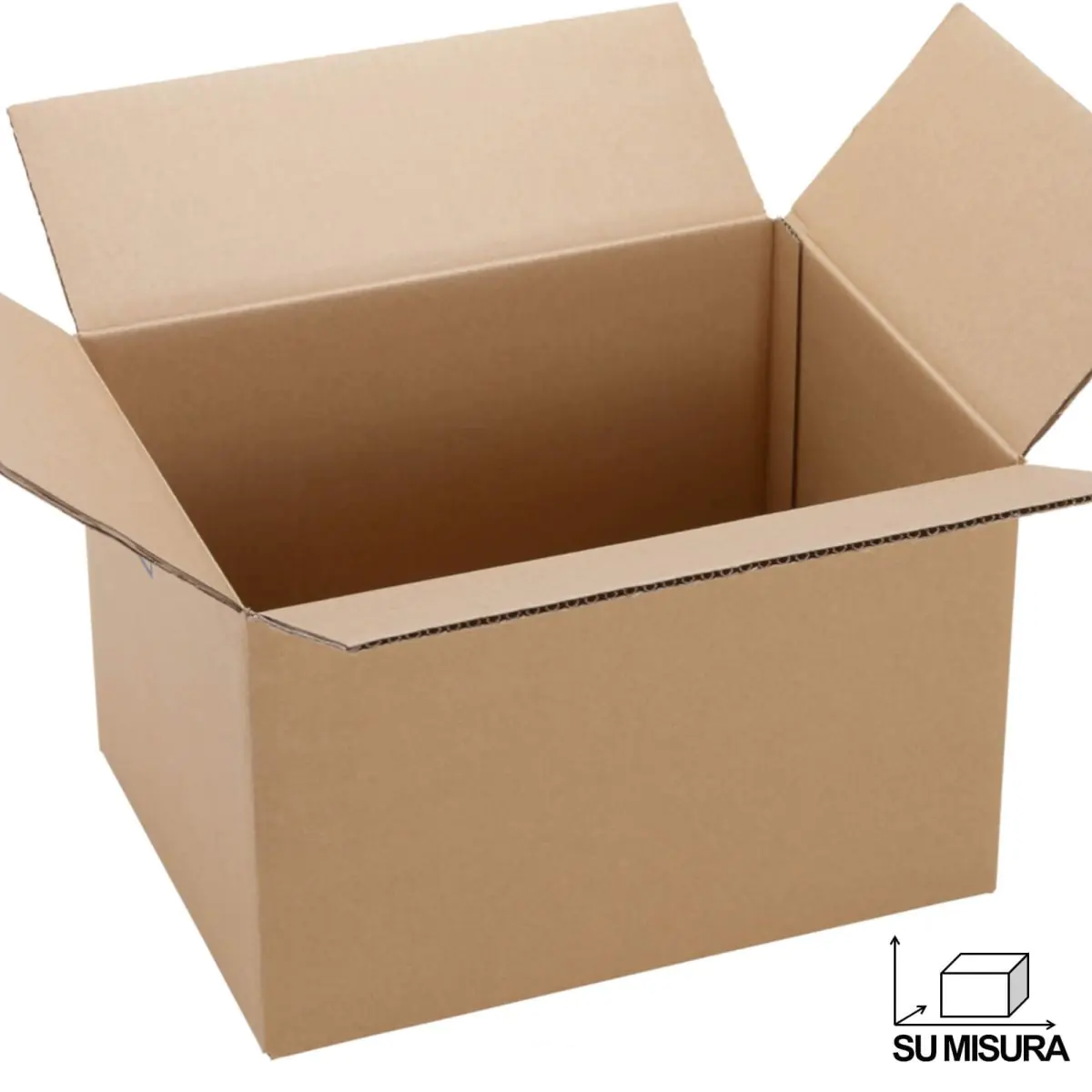 | Materiale | Scatola in cartone ondulato onda doppia vulcano (very strong, alta resistenza, 0,7 cm di spessore). |