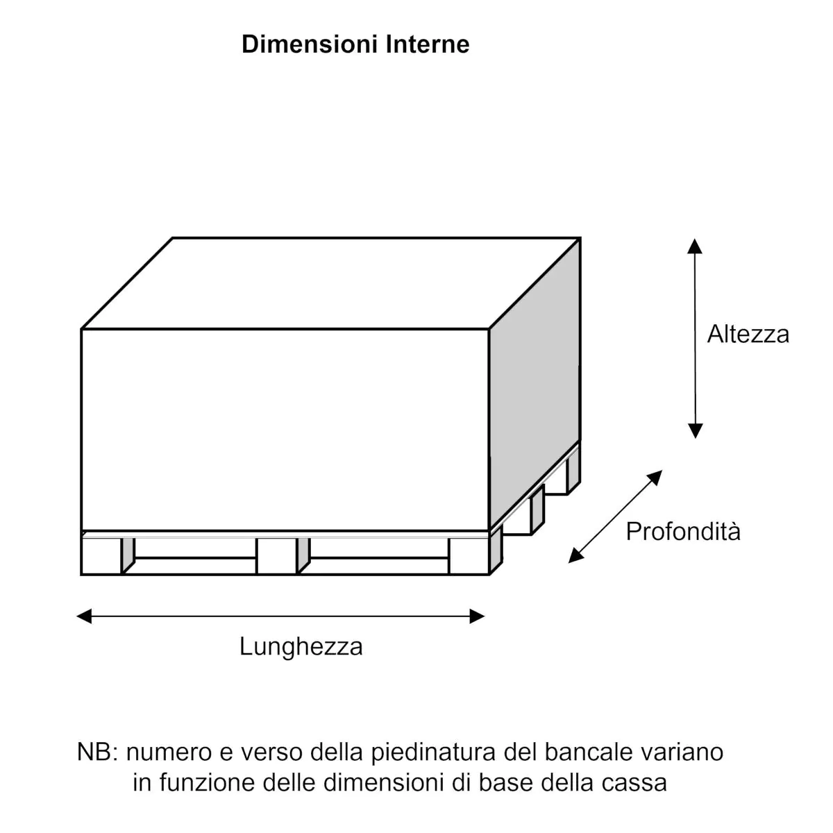 Cassa in legno con fondo pallettizzato. Pallet (bancale) e robusta struttura interna in legno massello, rivestimento esterno con pannelli OSB.
