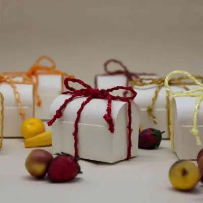 Sono scatole utilizzate come porta confetti, bomboniere, o per confezionare oggetti. La particolare forma la rende adatta per orologi, bigiotteria o oggettistica.
