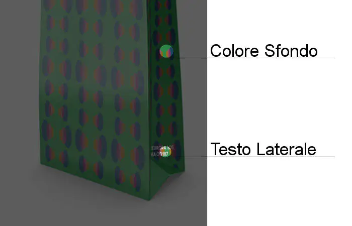 | Colore | Il colore esterno è il risultato della stampa e della plastificazione, che può essere lucida o opaca. L'interno è sempre bianco escluso risvolto in alto in prossimità dei nodi che è come l'esterno della shopper |
