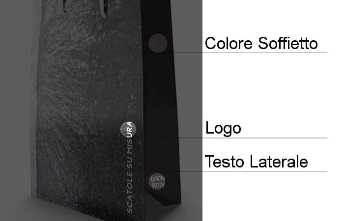 | Accessori Scatole | Si può scegliere se i 4 nodi delle maniglie sono visibili (opzione di scelta "No accessori") o coperti da un risvolto in cartone (opzione "Ricopertura dei 4 nodi"). |